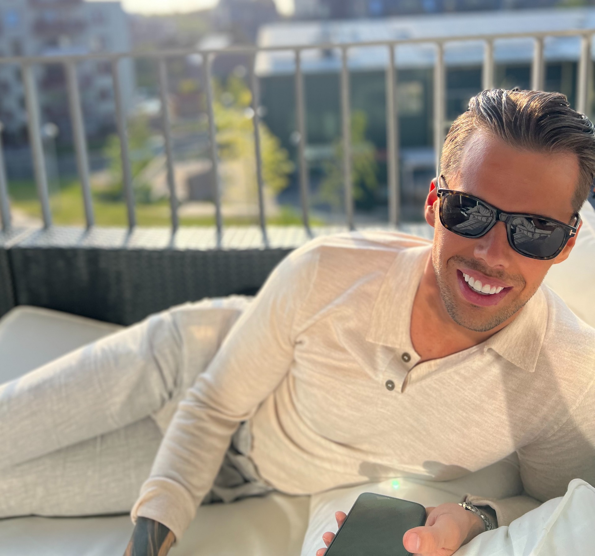 Till vardags är han skräckinjagande bra på sälj och finans, vilket märks även socialt: han är trygg, snabb i repliken, charmig och lagom kaxig – på det där sättet som bara funkar när man faktiskt levererar.